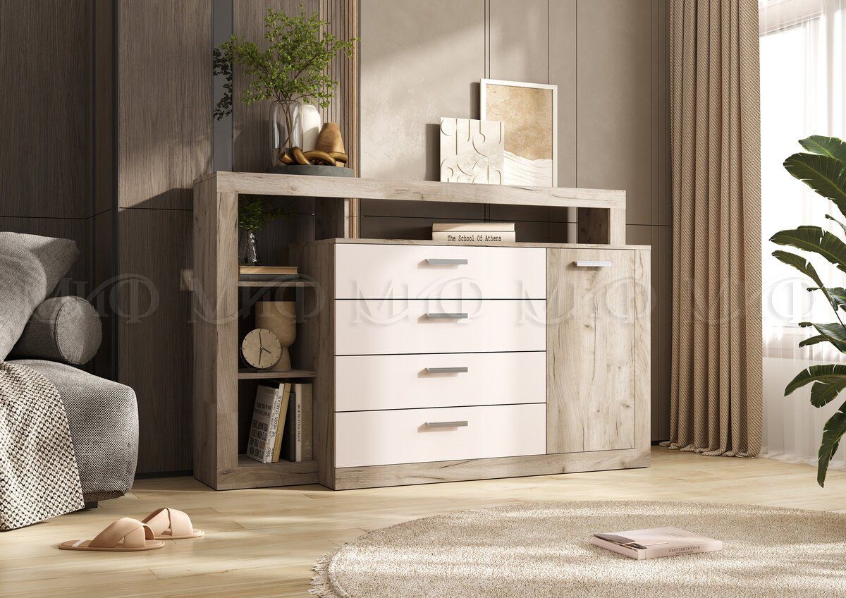 Ангара Комод кашемир/дуб крафт серый Ш1602хВ1040хГ476 мм