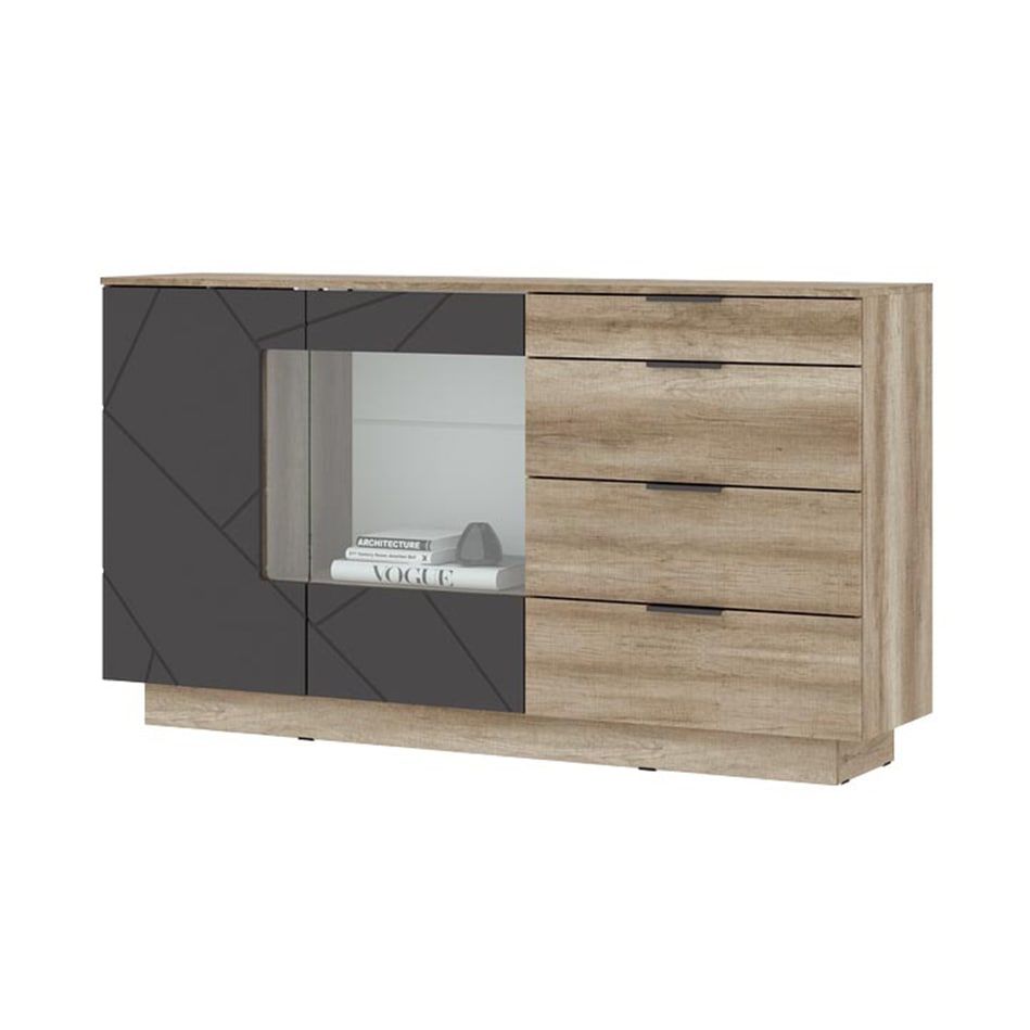 Даллас КМ 02 Комод 4 ящика со стеклом Стенд