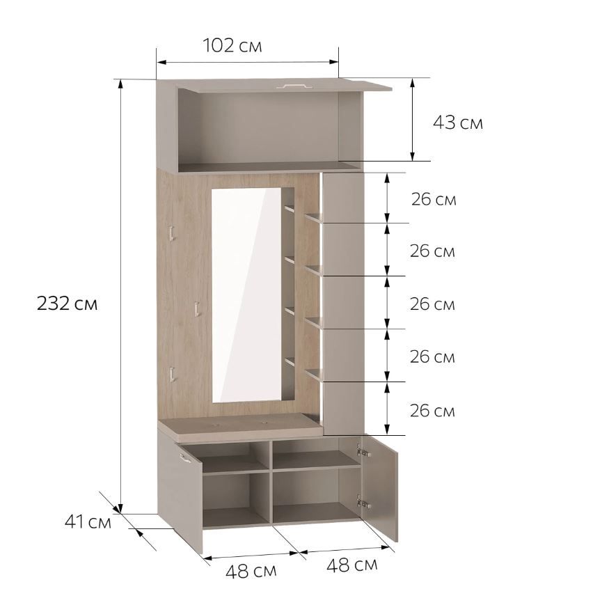 Размеры (ШхГхВ), мм —1024х416х2325