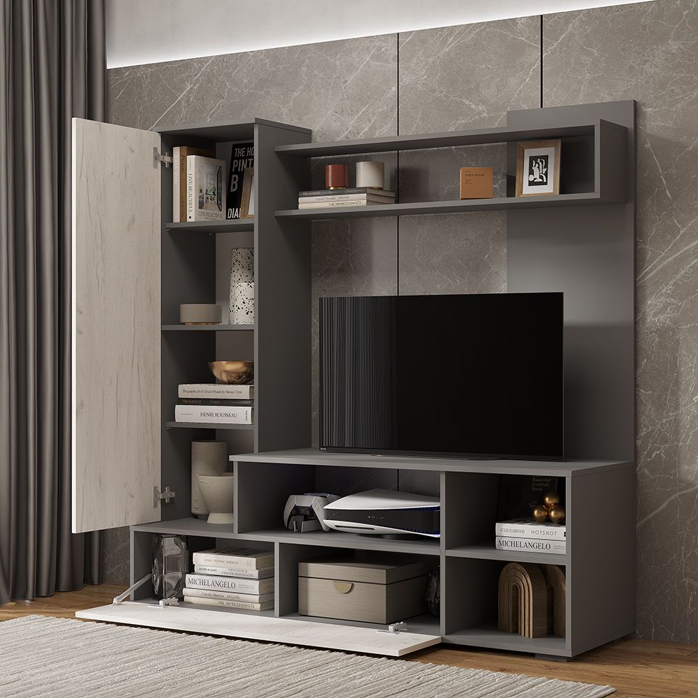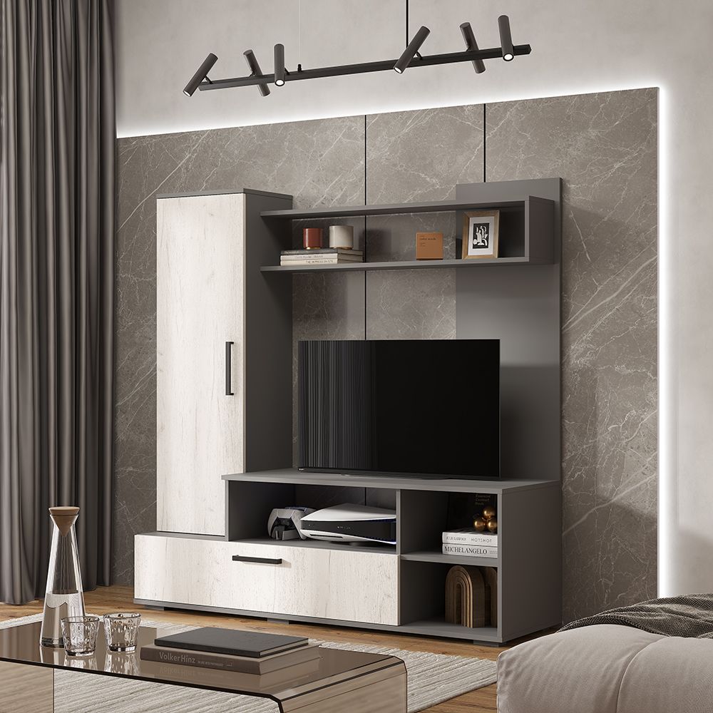 Гостиная Евро 2 (лдсп) (Графит/дуб крафт белый) , Ш1500хВ1520хГ440 мм