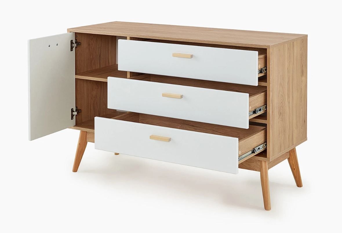 Калгари спальня Комод 1195х450х820 дуб натуральный светлый / белый матовый