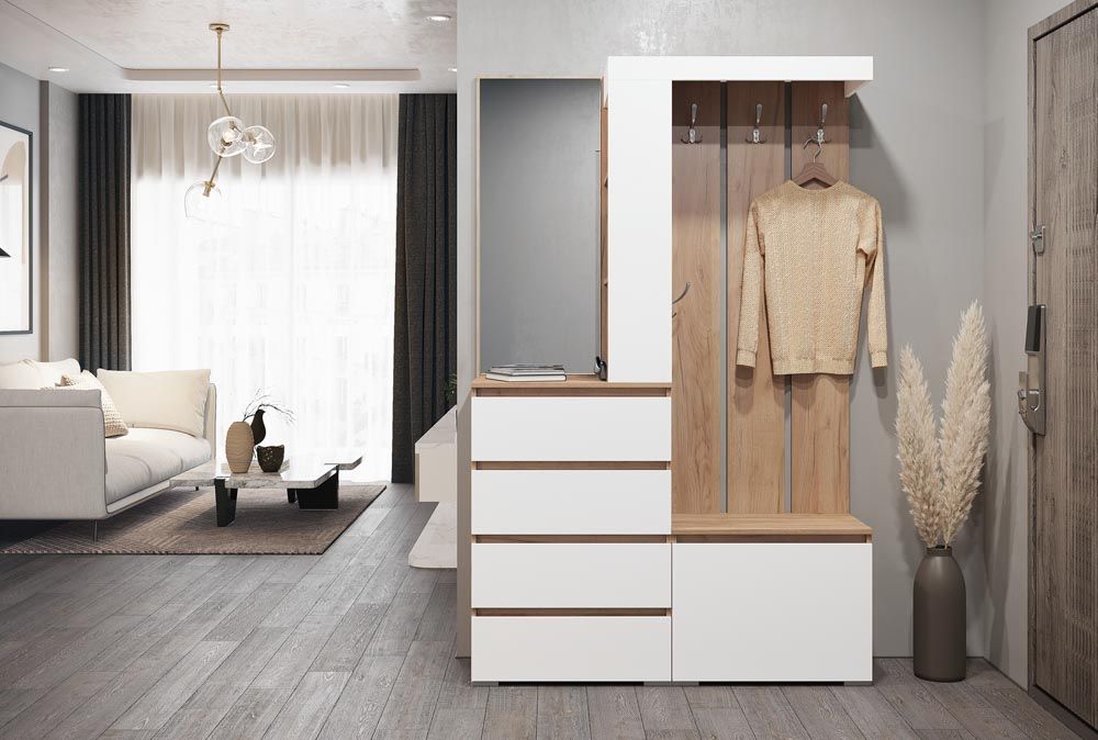 Хелен Прихожая 1260х1980х355 Крафт золотой/белый