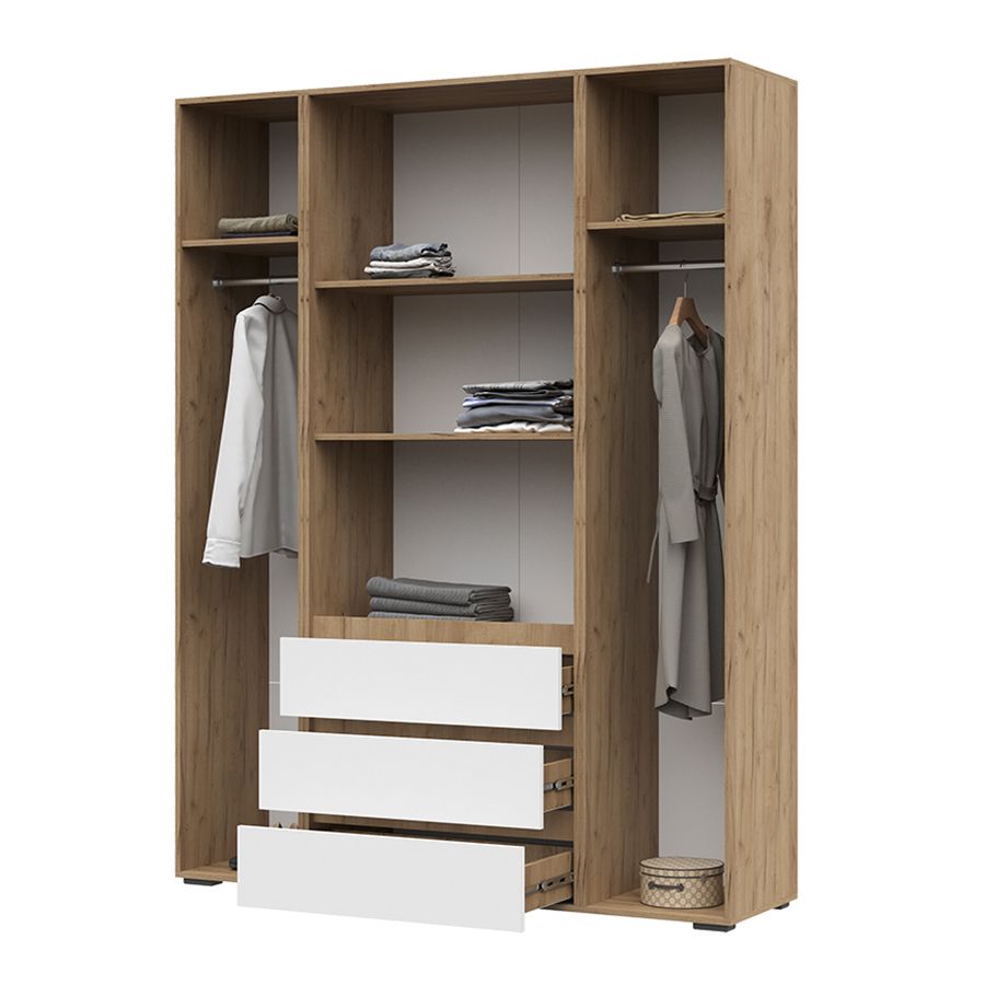 КоллекцияХеленКонструкцияраспашной шкафЦветдуб крафт золотой/белыйНазначениеплатянойТип установкинапольныйМатериал корпусаЛДСПМатериал фасадаЛДСПЧисло дверей4ДверцыраспашныеШтанга для вешалокестьМодульныйестьШирина1600 ммВысота2100 ммГлубина465 ммМФСтендСкладЛИ -