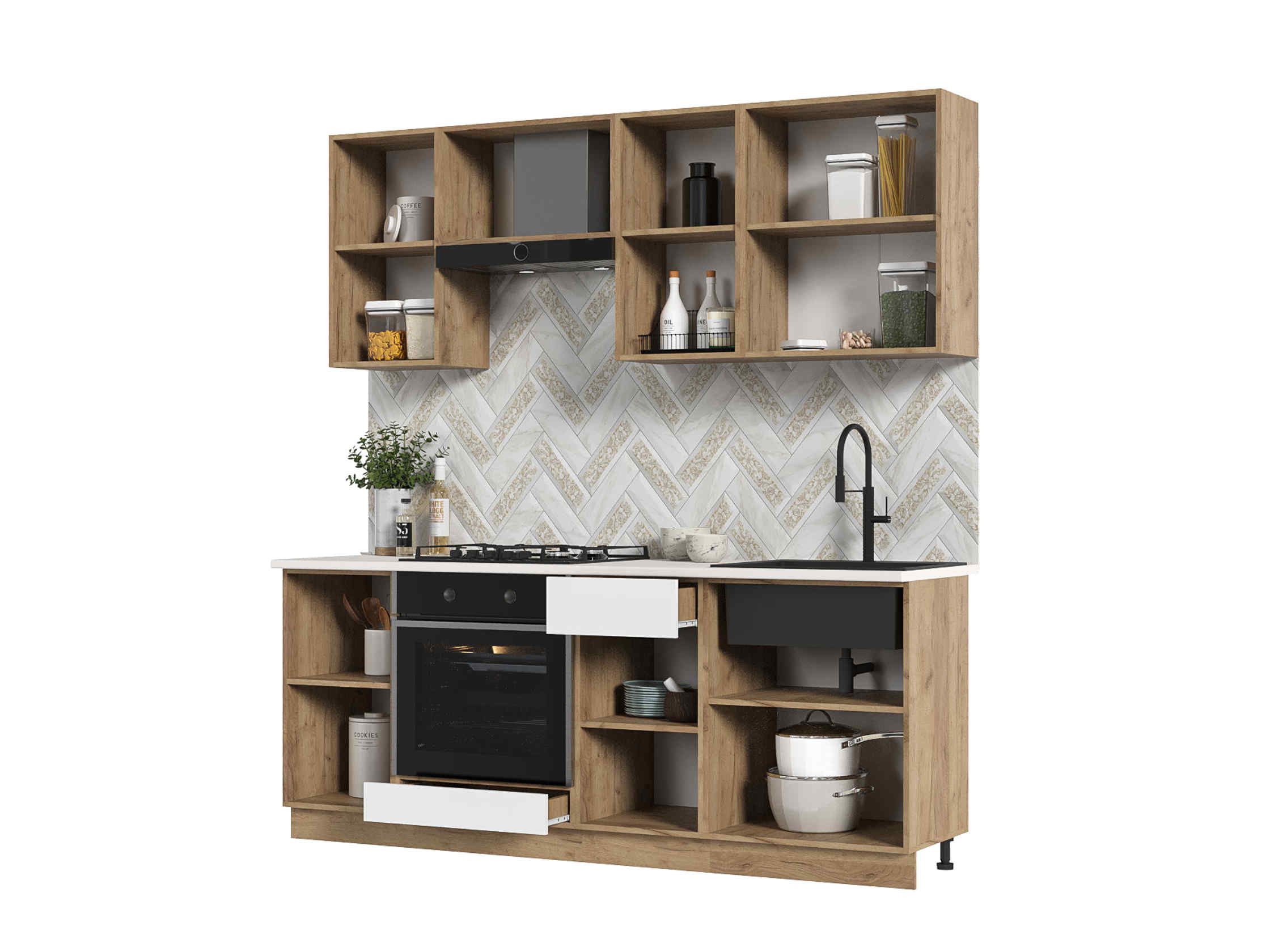 Корпус: Изготовлен из высококачественного ЛДСП в цвете "дуб крафт золото". Этот благородный оттенок добавляет теплоты и изысканности вашей кухне.