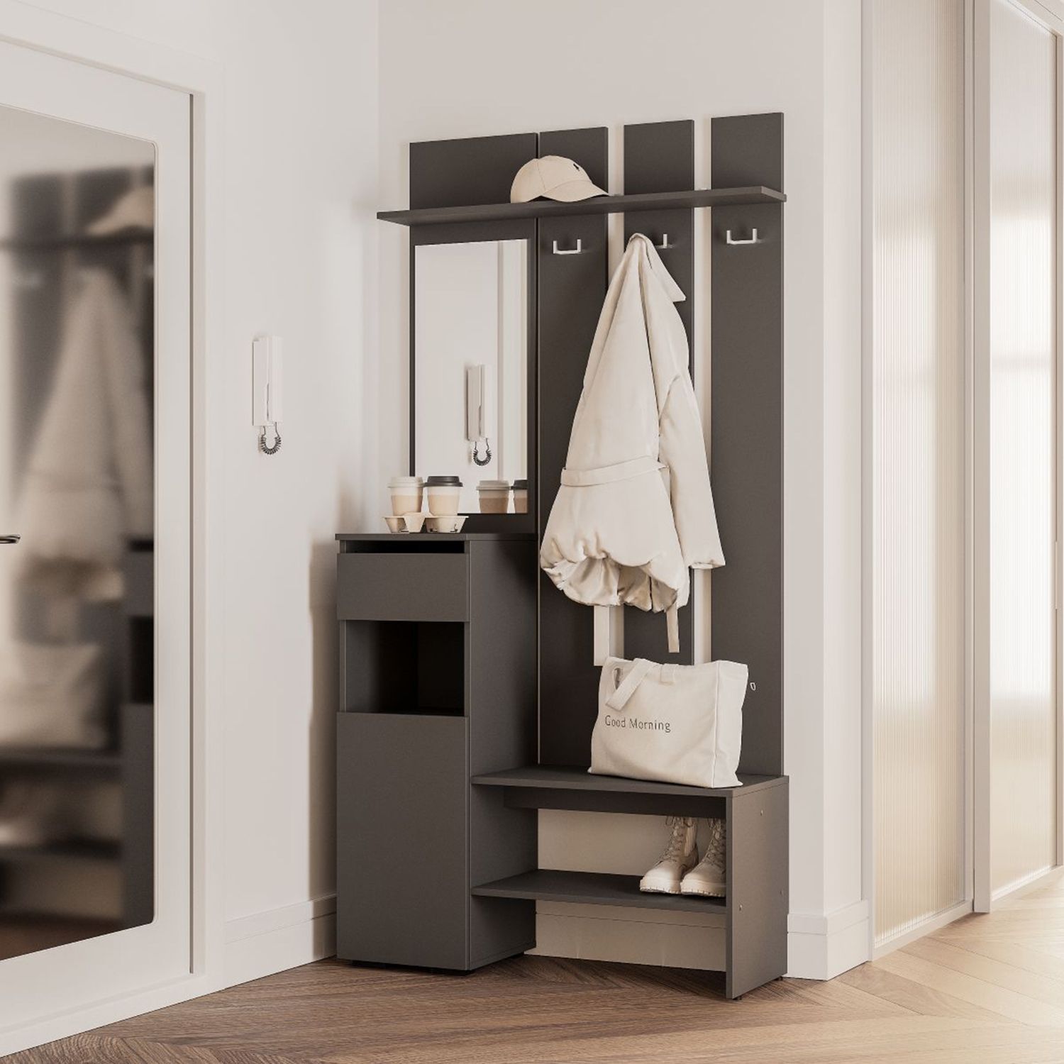 Прихожая Мия ПР-03 графит/графит 1000*2000* 376 мм