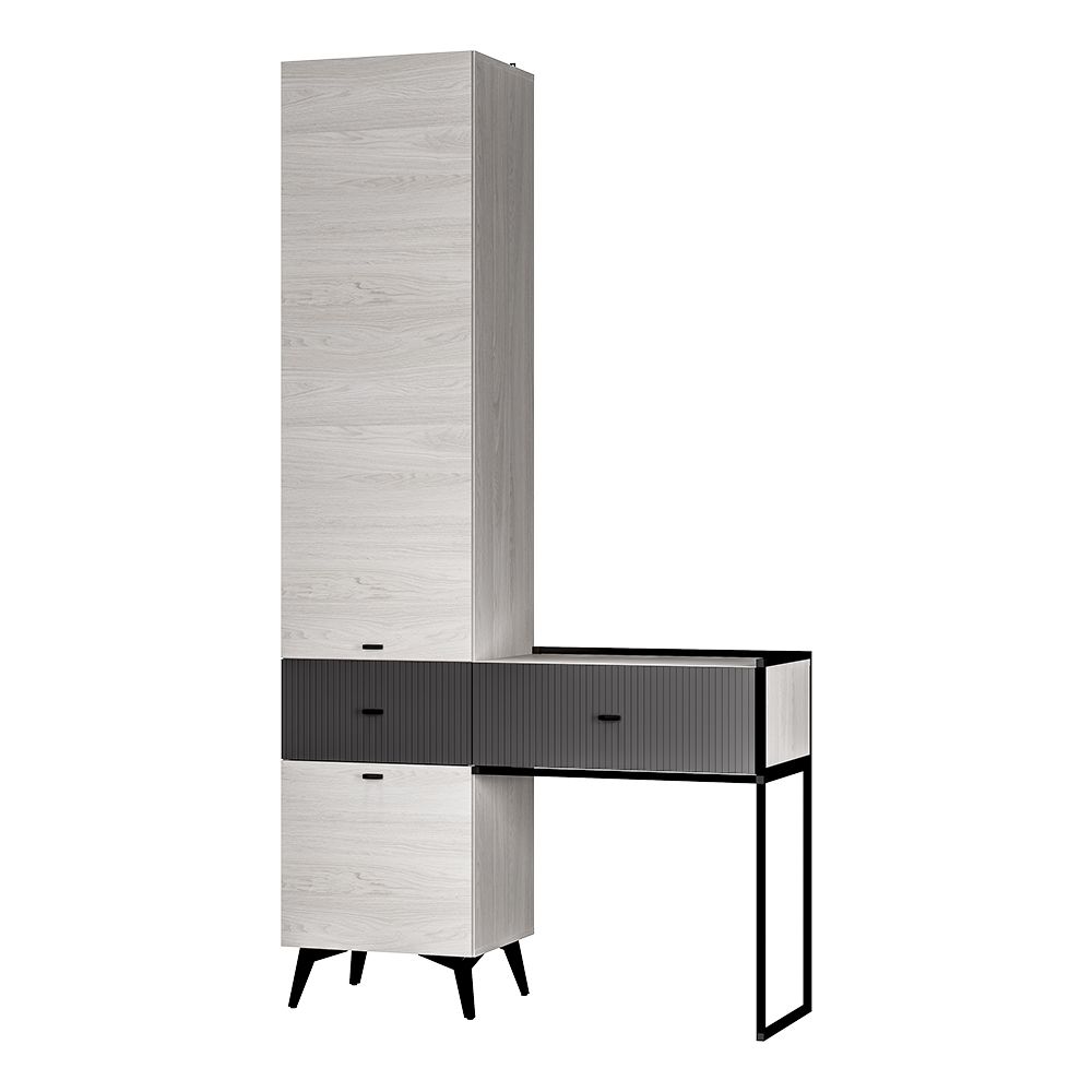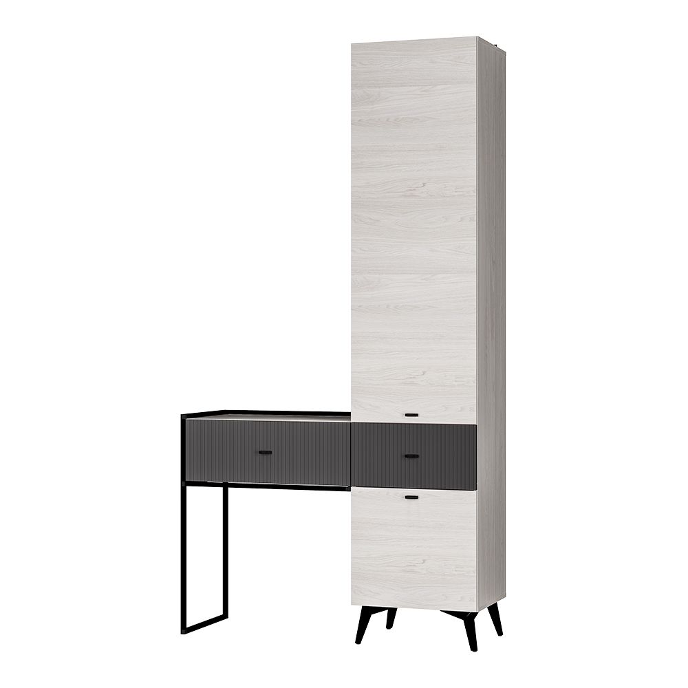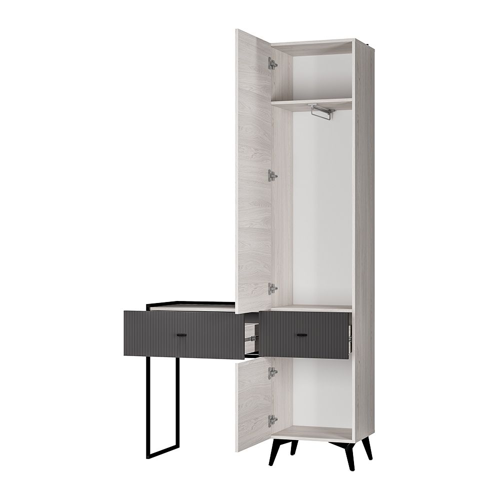 Прихожая «Норд» – идеальное решение для создания стильного и современного образа вашего дома. Эта модель объединяет два блока, формируя гармоничную композицию, которая станет ярким акцентом в вашем интерьере. Благодаря металлическим деталям конструкция становится прочнее, а дизайн – выразительнее.