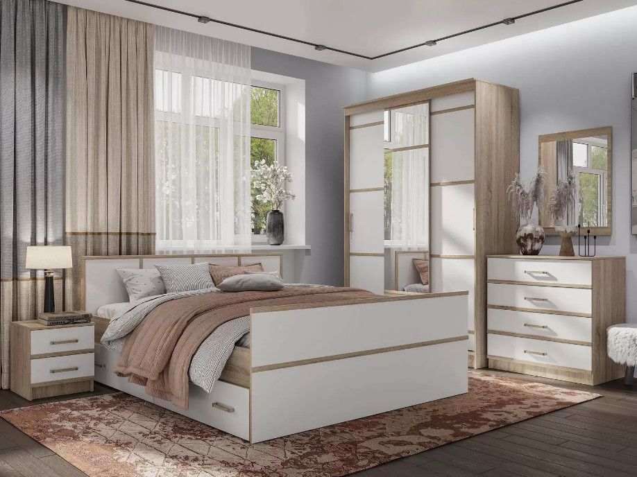Сакура Кровать 1,6м LIGHT Дуб сонома/белый