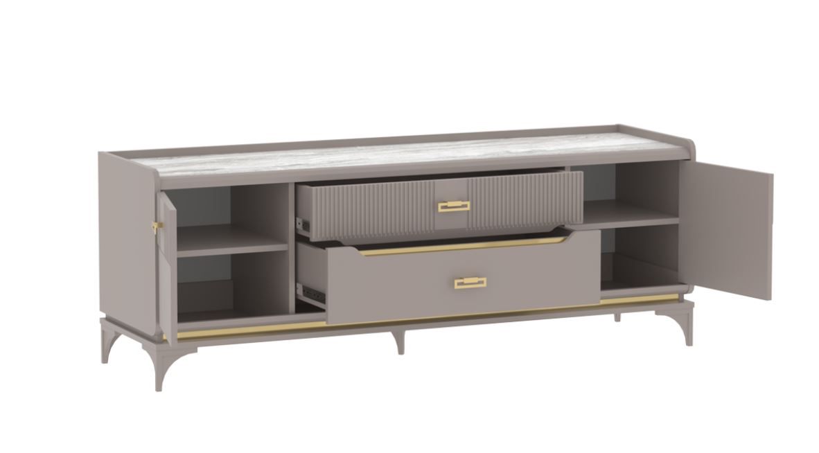 Вместительная тумба под телевизор из коллекции «Сиде» выполнена в классическом стиле. Опоры у неё декоративные, в тон корпуса, и сделаны из пластика.