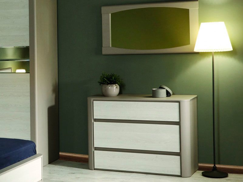 КоллекцияЛациоМФSbkКровать спальное место 1400естьШкаф 3х дверныйестьПрикроватная тумбаестьЗеркалоестьКомодестьСкладИн -