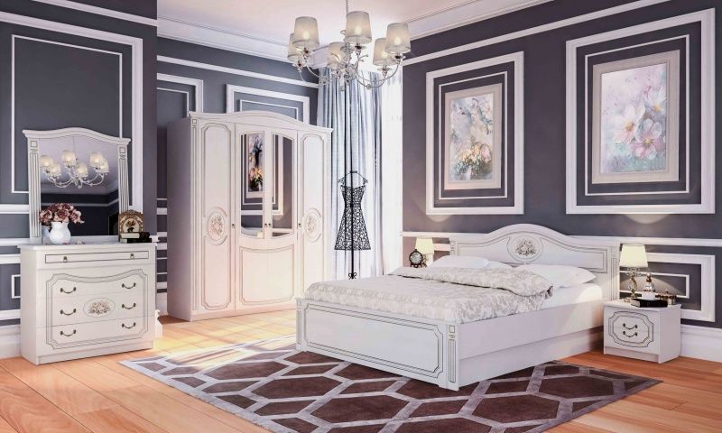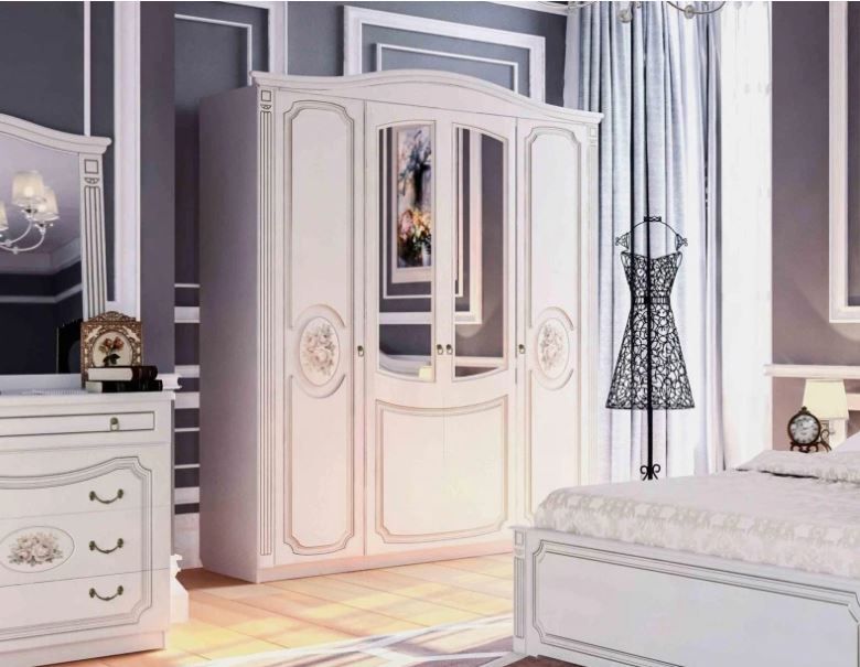КоллекцияВеронаМФМебельградКровать спальное место 1600естьШкаф 4-х дверныйестьПрикроватная тумбаестьЗеркалоестьКомодесть -
