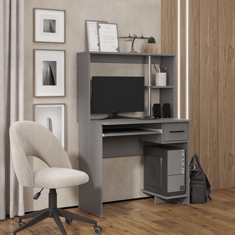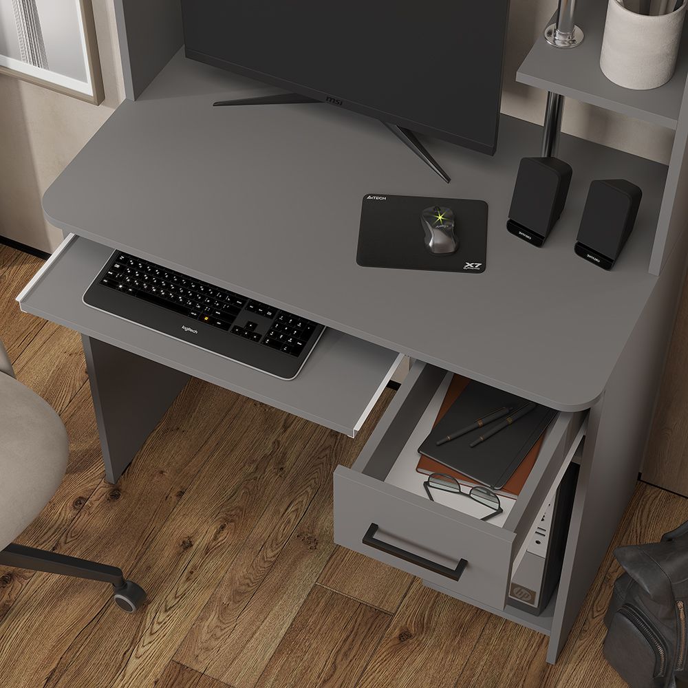 Купите компьютерный стол «Дебют» графитового цвета в мебельном магазине «Анкормебель» в Красноярске! Модель с оптимальными размерами – ширина 87,5 см, высота 132 см, глубина 40,2 см — идеально подойдёт для организации рабочего места. Приобретайте качественную мебель по выгодной цене уже сегодня!