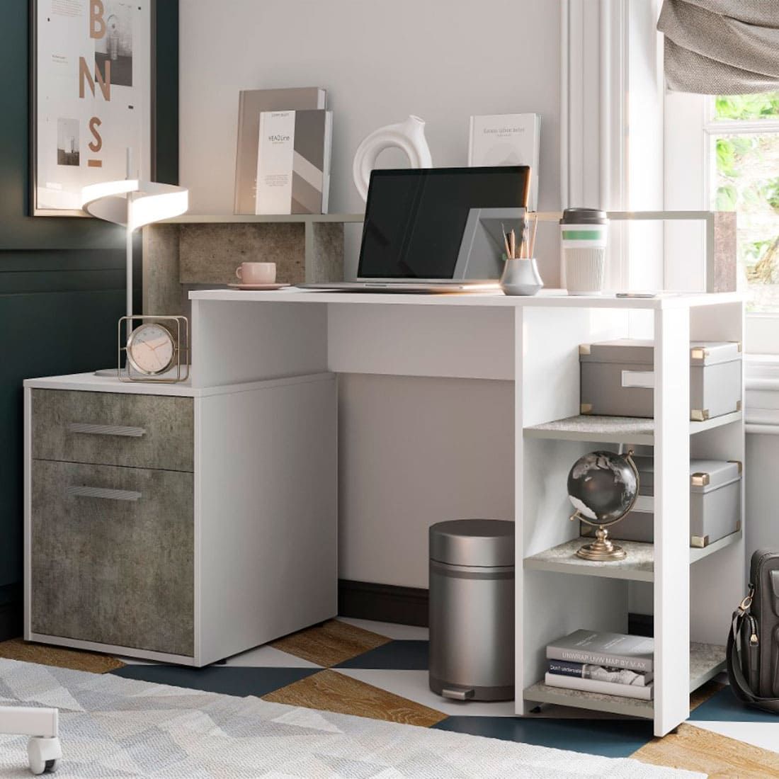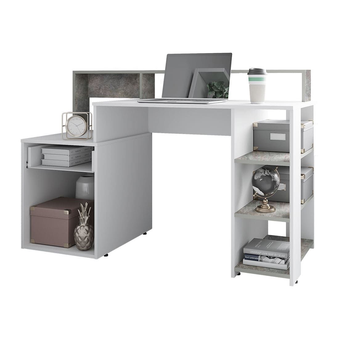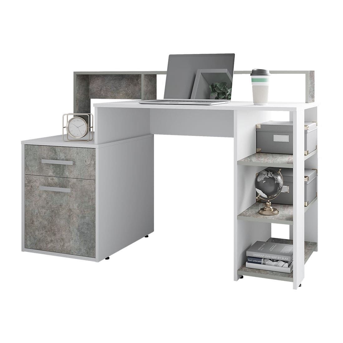 Стол компьютерный Лайф NEW Белый/бетон, Ш1384хВ904хГ538