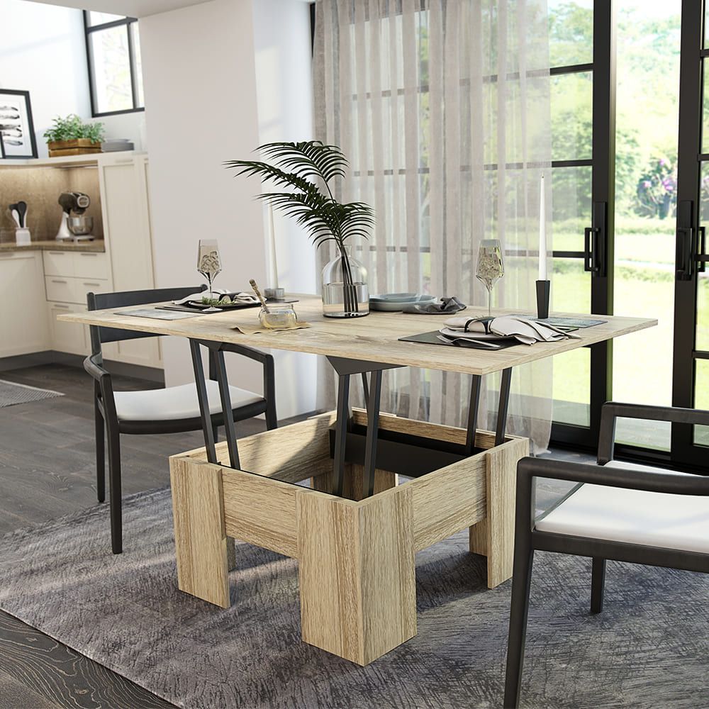 Этот стол станет украшением гостиной, а в случае прихода гостей легко превратится в полноценную обеденную поверхность.