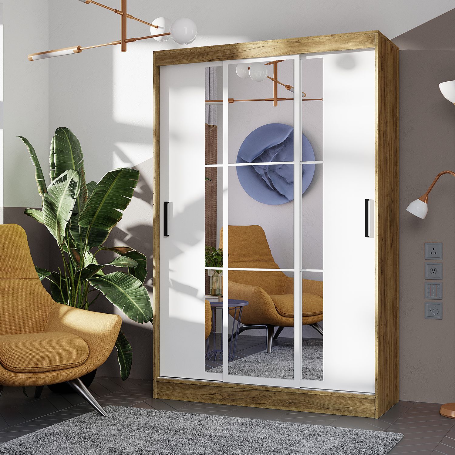 Конструкцияшкаф-купеЦветдуб крафт золотой/белыйНазначениеплатянойТип установкинапольныйМатериал корпусаЛДСПМатериал фасадаЛДСПЧисло дверей3Дверцыраздвижные тип купеС зеркаломестьМодульныйестьШирина1310 ммВысота2000 ммГлубина200 ммМФBTSСкладРа -