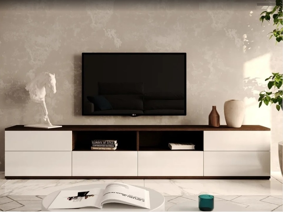 Размеры тумбы – 2402х436х473 мм — делают её подходящим решением даже для небольших комнат.