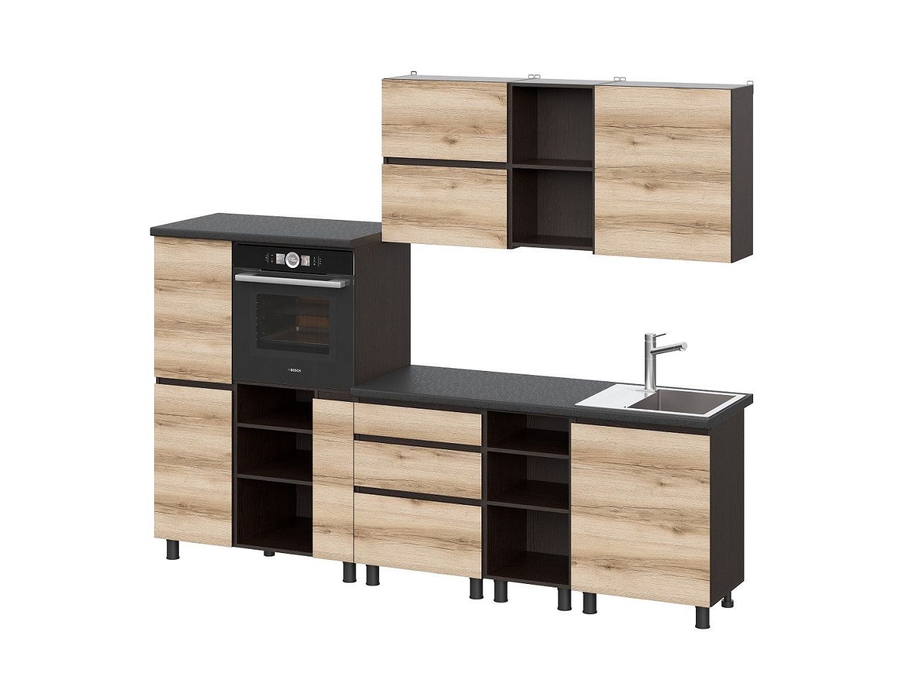 ПроизводительМФДлина2600 ммШирина2000Угловое расположениеестьМатериал фасадаЛДСПЦвет корпусавенгеЦвет фасададуб деланоЦвет столешницычерныйСтолешница повышенной влагостойкости 38 мместьСтолешница под врезную мойкуестьКухня с пеналоместьФурнитураstandartРучкиинтегрированнаяОпорачернаяМодульнаяесть -